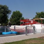 Bazén je velký, jde vlastně o dva spojené bazény s 37 metrů dlouhým tobogánem, skluzavkou, divokou řekou a oblíbenou lezeckou sítí. Pro malé děti je kousek dál, častečně ve stínu pod stromy, k dispozici brouzdaliště. Pokud děti omrzí řádění v bazénu můžete je vypustit na dětské hřiště nebo jim zaplatit 10 minut na trampolínách, které jsou v areálu. Malí i velcí si můžou zahrát ještě minigolf nebo stolní tenis, nechybí ani beach volejbalová hřiště.